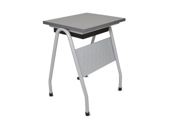 - Micropulverizada en color gris aluminio, con cubierta de mdt de 25mm con laminado plástico con cantos termofunsionados en pvc de 2mm en color gris