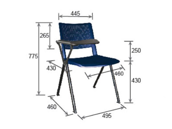 - Soporte del respaldo en forma de ”L” de perfíl redondo tubular de acero en 1” de diámetro, calibre 16; troquelado.