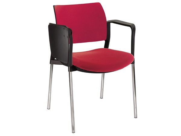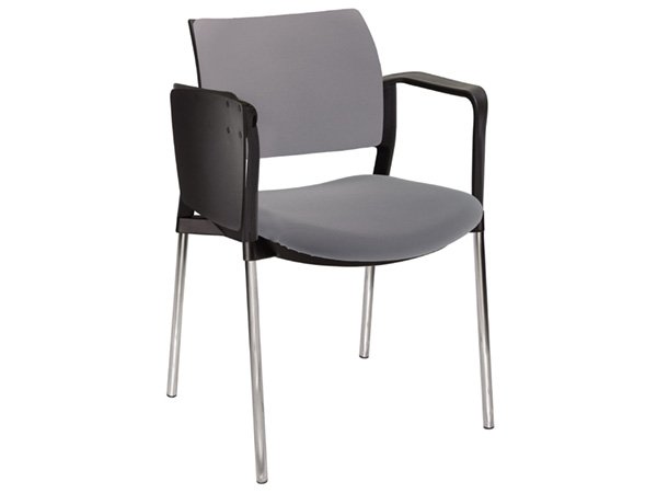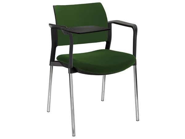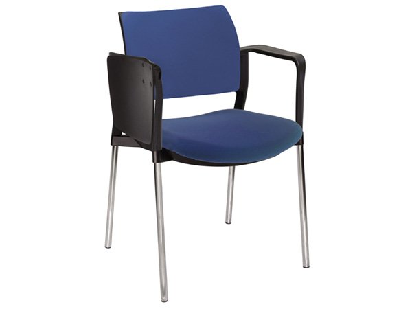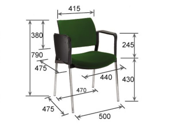 - Estructura: de acero tubular de 7/8″ de diámetro, calibre 14; terminado en cromo, con descansabrazos de polipropileno en color negro y con paleta lateral abatible color negro fijada al brazo mediante un dispositivo.